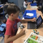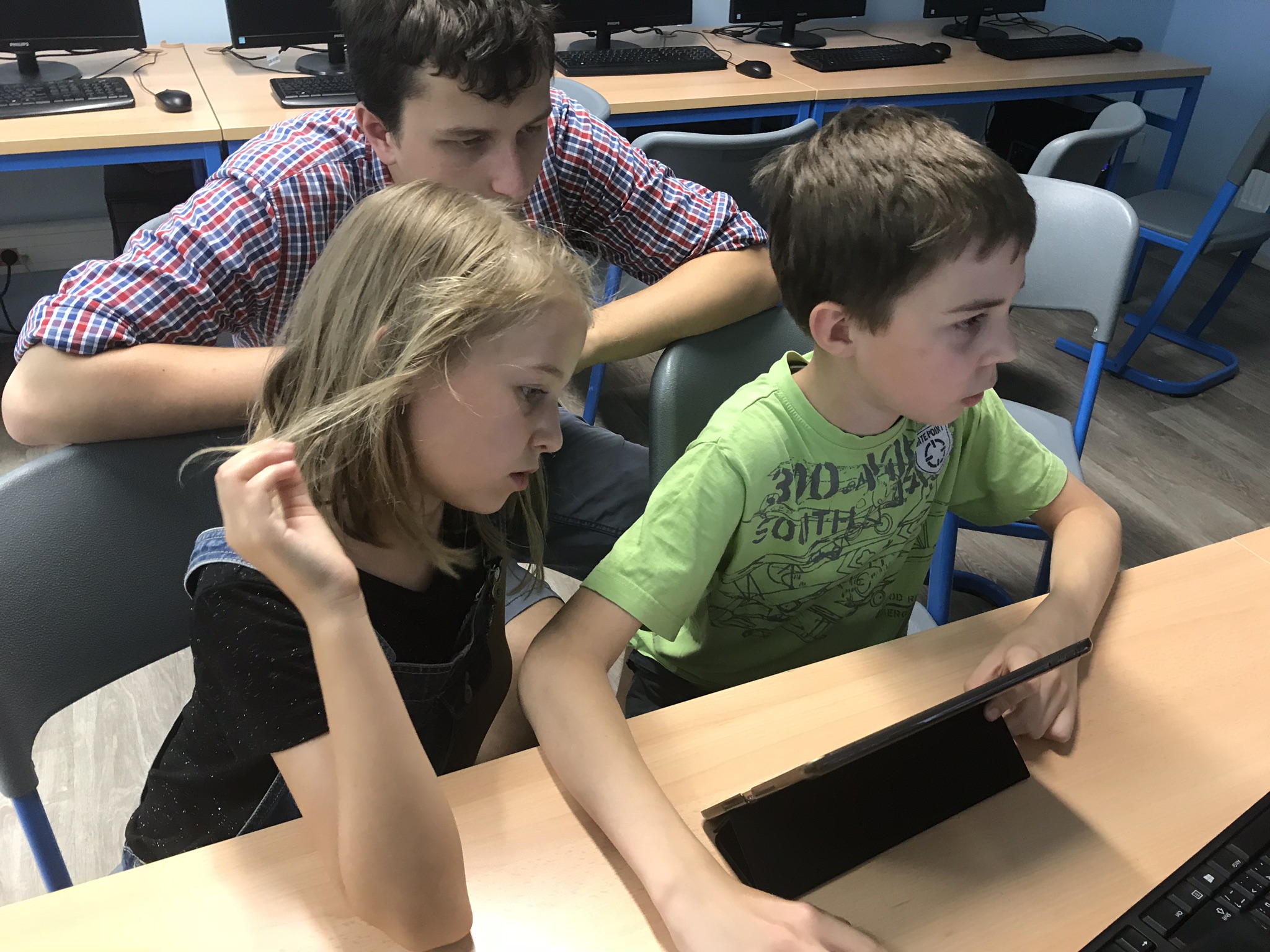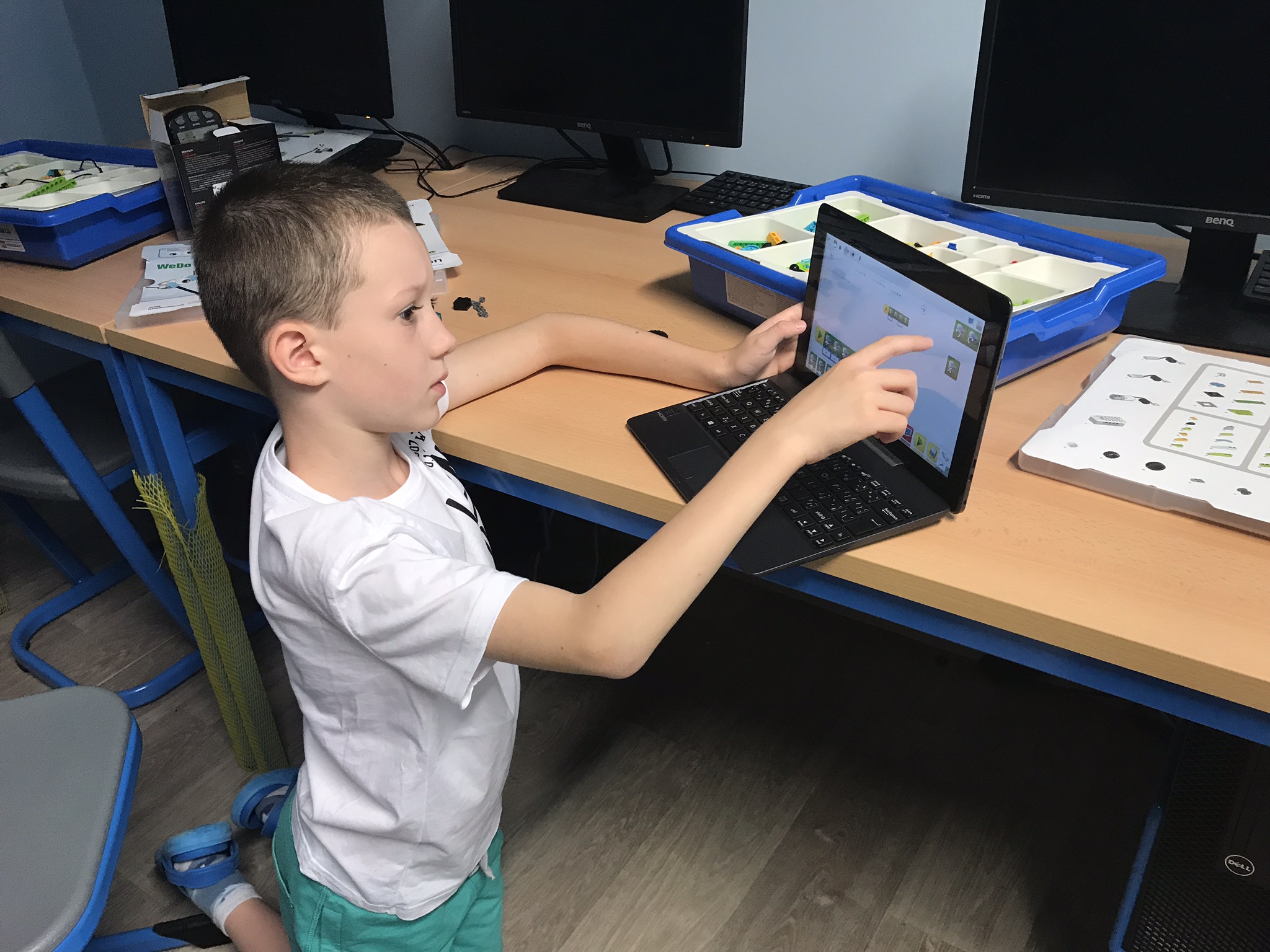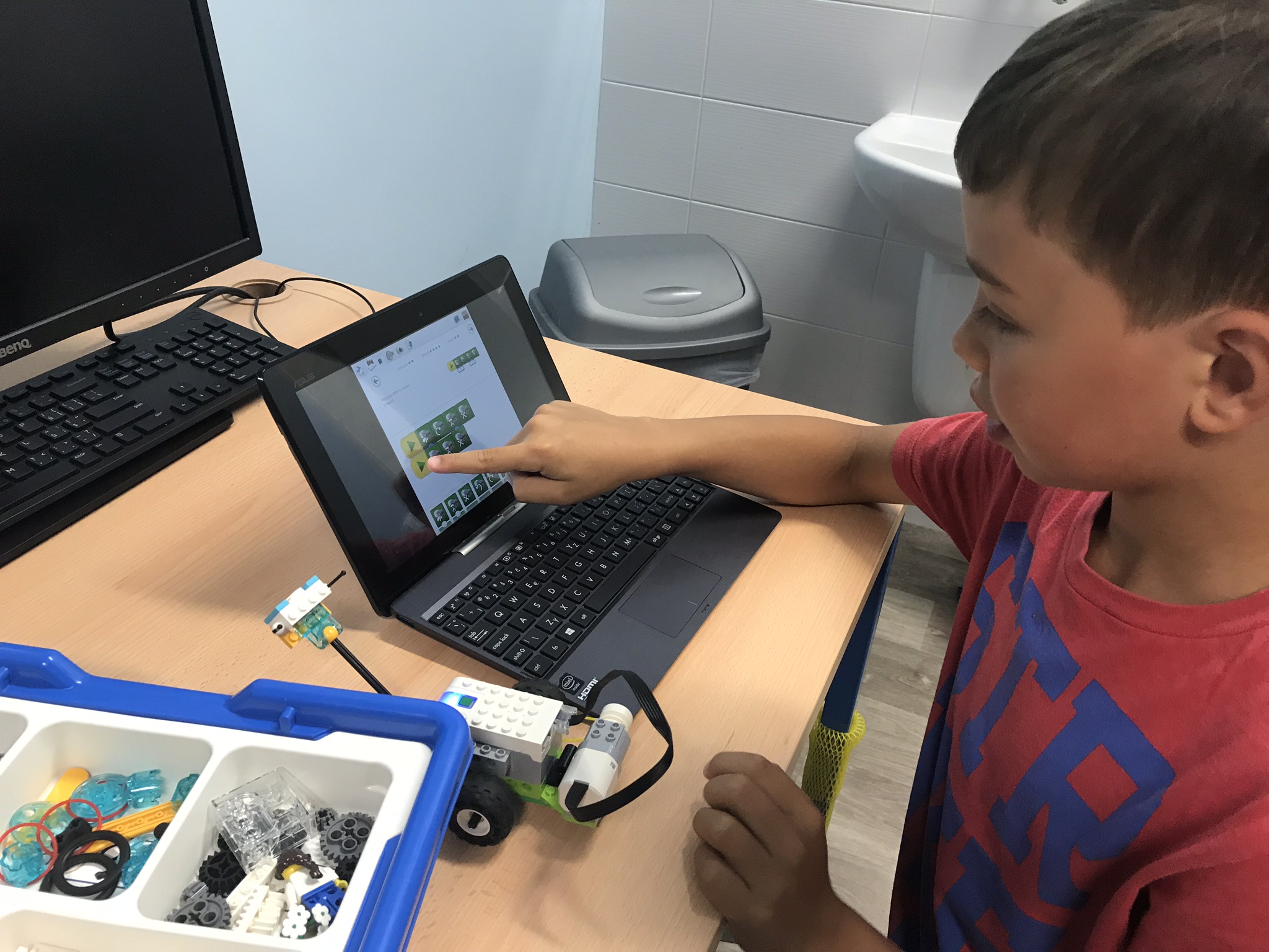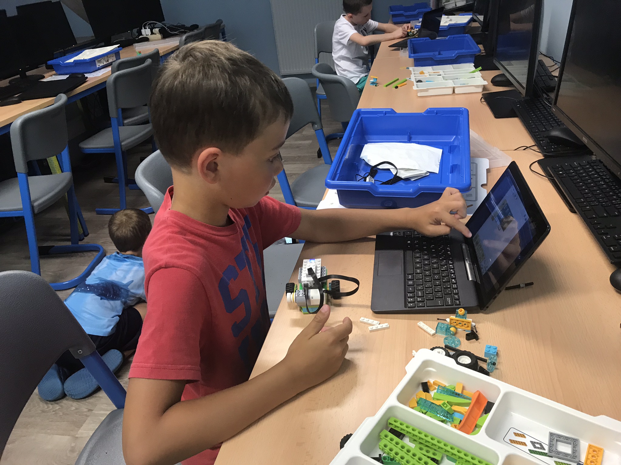 Ve středu jsme se rozdělili na dvě skupiny. První skupina strávila dopoledne stavěním a programováním robotů Lego WeDo a druhá se učila točit videa a využívala k tomu zelené plátno.