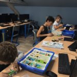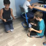 Předposlední den našeho tábora jsme pokračovali ve stavění robotů WeDo a tvorbě zábavných videí. Kromě toho jsme si ale vyzkoušeli i základy práce s programem Kodu.