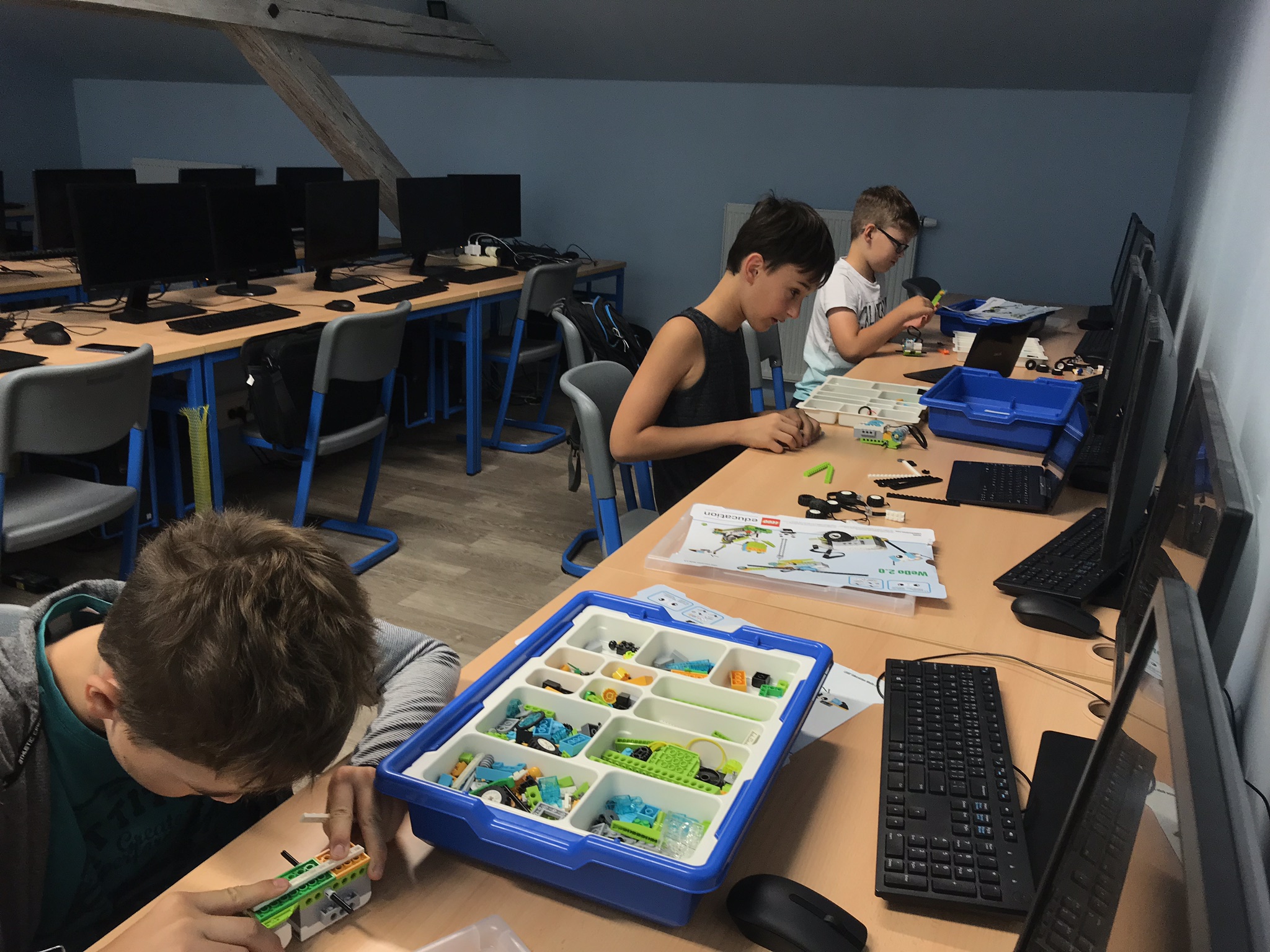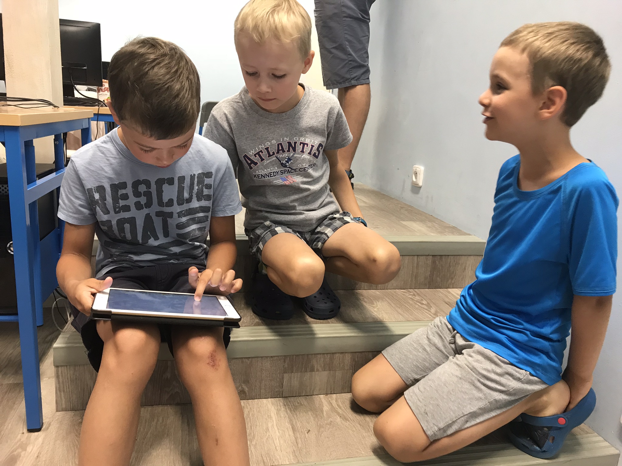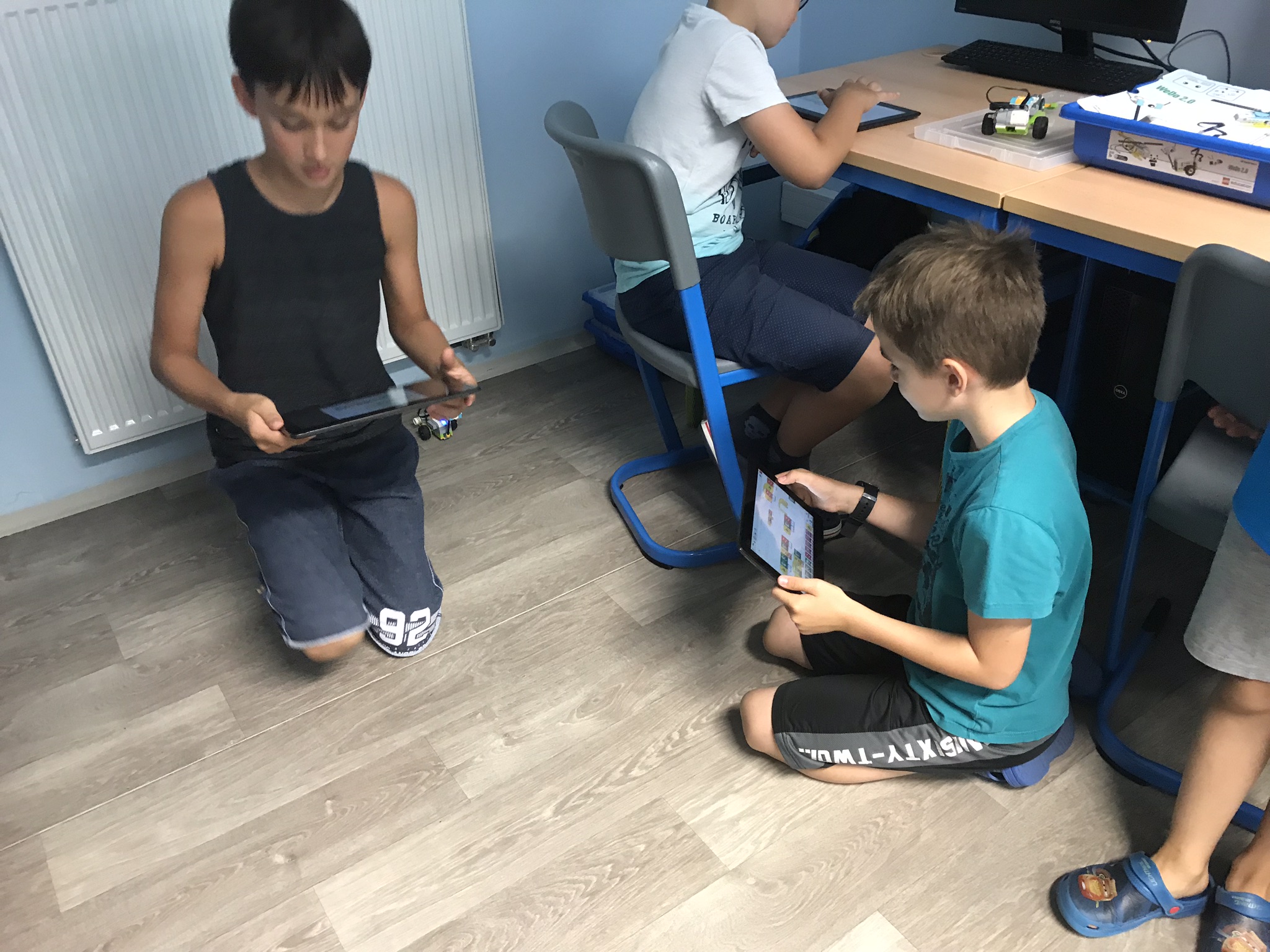 Předposlední den našeho tábora jsme pokračovali ve stavění robotů WeDo a tvorbě zábavných videí. Kromě toho jsme si ale vyzkoušeli i základy práce s programem Kodu.